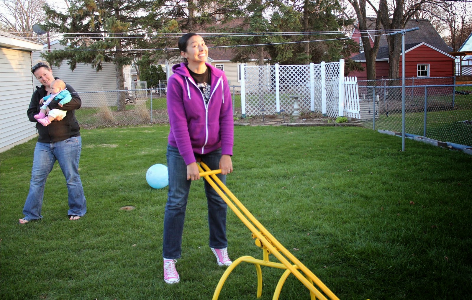 Wendi picked us up from the airport and we managed to stuff all of us into her car. She had a carseat for Madeline (thank you!!) and at the house Wendi had a playmat, a crib, blankies, bath toys, and the kitchen set for the girls. I could not have asked for a better welcome! The girls felt right at home and had plenty to keep themselves occupied. We stopped by Culver's for lunch on the way home from the airport (yum butter-burgers) but ended up having to drive through since both girls fell asleep in the car. Traveling is exhausting, haha! Wendi's home is so darn cute. I wish I could pick it up and bring it to San Diego. Great layout, perfect size. I love the sunroom, the tons of natural light, the original tile in bathroom, the original toothbrush holder in the bathroom (I want one so badly), the PINK double oven, the closet space, the milk door, everything. On top of just great bones, Wendi did a fabulous job decorating and her home is cute, comfortable, and spotless . . . all my favorite things! Wendi lives across the street from a huge park with a lake and plenty of play equipment so we headed over there after lunch to allow Madeline to burn off some energy. I think I was the only one of us who was cold in the 45 degree weather! We rounded off the night with Grandma Kathy coming over, making pizza at home, and Madeline got to celebrate her birthday (again)! Wendi had balloons, a cake, and presents. My kid is so spoiled and she enjoyed every second of her celebration.